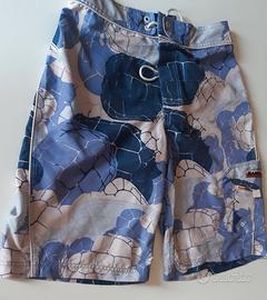 Pantaloncino/costume bagno, marca Mambo, vintage, taglia 30, 2 tasche (una davanti, una dietro, disegno mosaicato sui toni del grigio azzurro.