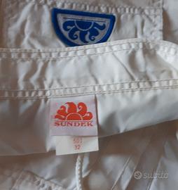 Costume da bagno uomo marca Sundek, colore panna chiaro con profili azzurro chiaro e scuro. Nylon 100%. Taglia 32.