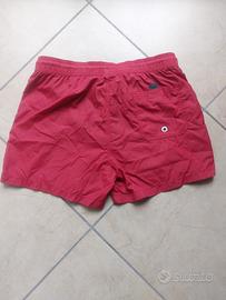 Costume Bear surfboards Malibu. Pantaloncini con bande laterali a contrasto ed etichetta logo Bear tessuta applicata sulla gamba sinistra. Cordoncino di chiusura in vita bear surfboard. Taglia: 32(M); Colore: rosso.