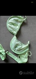 Costume nuovo senza etichetta, mai indossato a causa della taglia sbagliata. Reggiseno con ferretto e chiusura regolabile. Mutanda arricciata sul retro