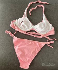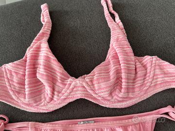 Parte di sopra in spugna a righe tonalità rosa e bianco