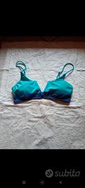 Costume nuovissimo, mai usato e con cartellino. Colore azzurro e viola, due pezzi. Il reggiseno ha un ferretto a V tra le due coppe. Taglia 46