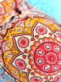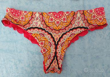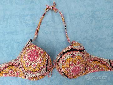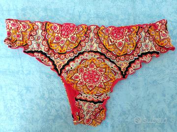 Costume due pezzi Goldenpoint, mai usato come nuovo, taglia II. Slip brasiliania con arricciatura posteriore. Reggiseno con ferretto rigido (no imbottito). Tessuto resistente con qualche brillantino.