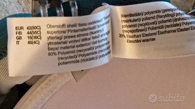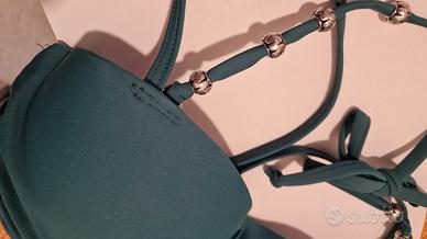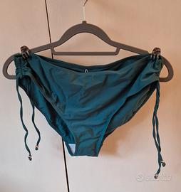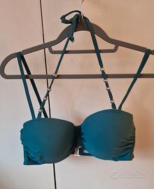 costume Bonprix due pezzi, color petrolio. 80% poliammide, 20% elastan. Slip con coulisse sui fianchi, taglia 48. Reggiseno con coppe imbottite e cordoncino dietro collo removibile, e inserti in metallo. Taglia 48 (4C). mai indossato
