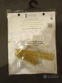 Il nostro Costume Toga Romana include un adulatorio vestito bianco che s'infila semplicemente dalla testa. La toga presenta scollatura a drappeggio con particolari dorati sulla spalla. Il drappo scende dolcemente sulla spalla. E' inoltre inclusa l'elegante cintura dorata che si allaccia con il velcro per maggiore comodità e vestibilità perfetta. Taglia XL - 48. Consegna a mano a Bologna
