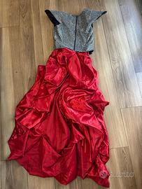 -Gonna in Raso rossa con "rose" come decorazioni.