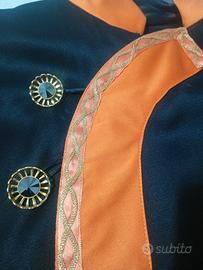 Vendo costume Cinese anni 70 in stoffa pregiata (tutto in raso) completo di pantalone con coulisse in vita e giacca Kimono con chiusura a due bottoni. Cucito a mano.