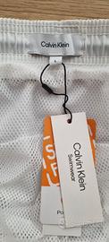 pantaloncini da bagno Calvin Klein bianco con logo e strisce nere laterali.