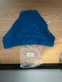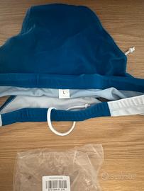 Costume da bagno colore blu/bianco. Presenta un laccetto bianco per una migliore vestibilità. Tessuto acriloco.Design a vita bassa. Nuovo mai usato. TG L
