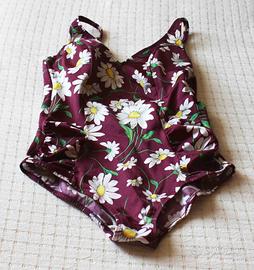 Costume da bagno NUOVO da donna intero color Lilla con margherite olimpionico di taglia 52 (Italia).