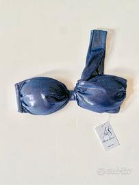 Top Fascia monospalla con coppe imbottite, estraibili, in omaggio, chiusura a fiocco, con tessuto con effetto micro-glitter che dona un luccichio meraviglioso