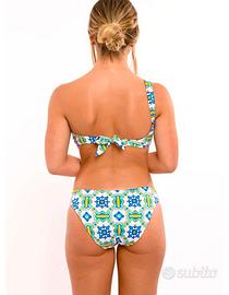 Monospalla con coppe imbottite, estraibili in omaggio, disegno verde smeraldo, chiusura a fiocco adeguabile a qualsiasi torace