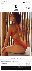 Costume “Royal Mansour” intero taglia M acquistato sul sito di Sofia Godinho Fashion (allego foto contenente la tabella delle taglie consultabili anche sul sito di Sofia Godinho Fashion). Colore corrispondente alla foto. Costume acquistato due settimane fa, mai usato (ancora ci sono gli adesivi di protezione), vendo perché la vestibilità per me è piccola sui fianchi.