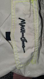 Vendo Costume da Bagno Maui and sons colore bianco e nero con disegni con tasca posteriore chiusura in velcro e lacci taglia M. Preferibilmente ritiro a mano. Condizioni come nuovo usato pochissimo.