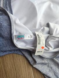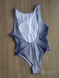 Costume intero, nuovo con cartellino. Coppe interne, colore denim sfumato, accollato davanti e schiena scoperta. Taglia S. Marca "La vie en Rose". Vendo per inutilizzo e perché non mi veste bene. Contattami per altre informazioni o foto