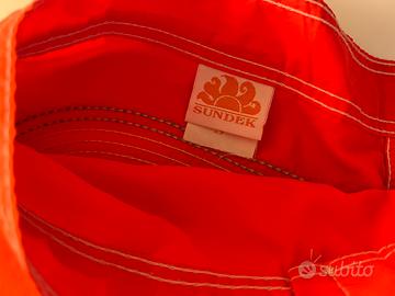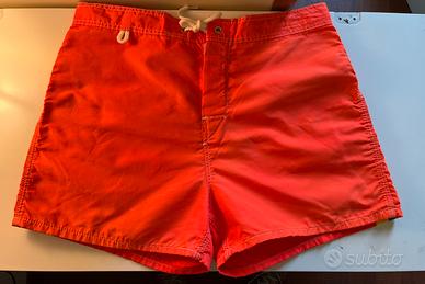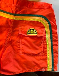 Costume da bagno Sundek corto a vita fissa in nylon di colore arancione con l’iconico arcobaleno e il logo Sundek sul taschino posteriore. Cuciture a tre aghi che assicurano resistenza nel tempo.