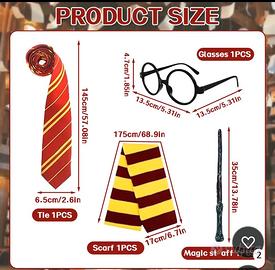 il set include 1 Costume Harry per bambini, 1 sciarpa, 1 bacchetta, 1 cravatta e 1 occhiale.