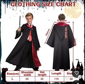 Il mantello è realizzato in tessuto di raso a doppio strato, la fodera rossa esalta la trama degli abiti da mago . I