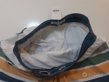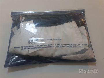 Costume da mare uomo MaaMgic, nuovo mai indossato. Disponibili taglie M (81cm vita) e L (86cm vita), colore Bianco e Blu a Strisce, slip interno traspirante, piscina mare surf.