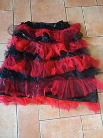 abito di carnevale unico ,composto da gonna artigianale con tulle,maglia con profili che riprendono la gonna , coprispalle e mantilla per i capelli