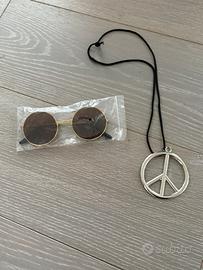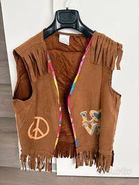 Vestito da uomo composto da maglia e pantalone abbinati + gile’ scamosciato frange per festa anni 60-70. Sono inclusi gli accessori come da foto: occhiali, fascia x capelli e collana peace and love tg. L