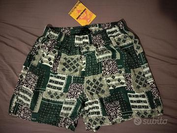 Costume da Mare marca SantoStefano in pura Seta 100% con trattamento sand-washed silk. Pantaloncini da bagno da uomo da uomo nuovi, mai indossati ancora con cartellino. Fantasia vintage con effetto lucido.