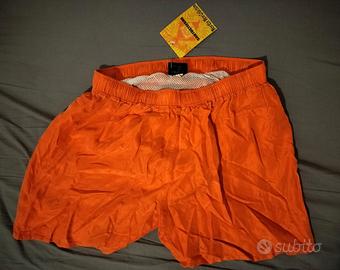 Costume da Mare marca SantoStefano in pura Seta 100% con trattamento sand-washed silk. Pantaloncini da bagno da uomo da uomo nuovi, mai indossati ancora con cartellino. Colore arancione acceso con effetto lucido.