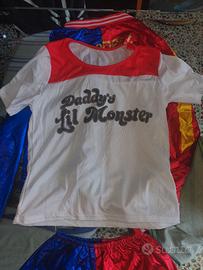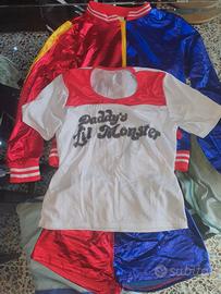 Cospley,costume ispirato a DC Comics, composto da maglietta bianca e rossa con scritta, calzoncini rossi e blu, giacca rossa e blu con scritte color oro sulla schiena, nuovo, taglia S, euro 20.