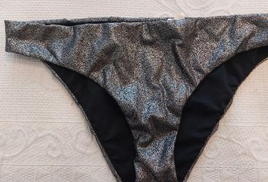 Vendo bellissino costume da mare color argento-Calzedonia,indossato solo 2 volte e in ottime condizioni. Segnalo solamente i cartellini tagliati,quindi la mutandina è una M mentre il reggiseno una 3.Riporto la misura dello slip:larghezza vita 38 cm.Per altre informazioni, contattatemi.