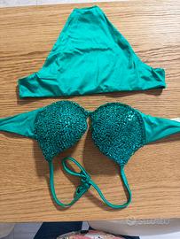 Vendo per inutilizzo costume da donna verde smeraldo con paillettes di Calzedonia.