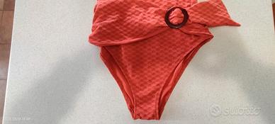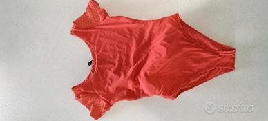 Costume intero di Tina Kunakey per Etam con piccola manica corta e cintura sui fianchi con anello, sgambatura alta, ideale anche come body o sotto giacca, foderato, in perfette condizioni indossato un paio di volte tg S