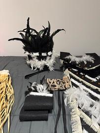 Vendo costume di sciamano Hawaiano usato solo per 2 giorni in una sfilata di Carnevale. Costume interamente realizzato a mano con rafia, e altri mareriali di qualitá. Il costume è composto da, parte centrale, polsini, finti tatuaggi braccio, gonna , colletto con piume e copricapo piumato, come da foto allegate.