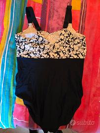 Costume intero molto elastico che segue la gravidanza adattandosi alla pancia fino ai 9 mesi, blu e bianco di Nabaiji in ottime condizioni, taglia L/XL