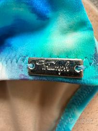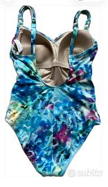Splendido costume da bagno intero del brand Triumph. Bellissima stampa floreale astratta nei toni dell'azzurro, turchese e tocchi di fucsia/viola. Coppe preformate e fascia elastica sottoseno logata per il massimo supporto anche per seni generosi. Elegante drappeggio (arricciatura) frontale che valorizza la silhouette e ha un effetto leggermente modellante. • Spalline doppie sottili decorate con un raffinato dettaglio effetto perla argento. • Targhetta metallica con logo "Triumph" applicata sul fianco. TAGLIA 46D