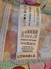 costume Lovable due pezzi con fiori. Slip con coulisse ai lati, taglia 4. Reggiseno con ferretti, no imbottitura, taglia 5C. Usato una volta