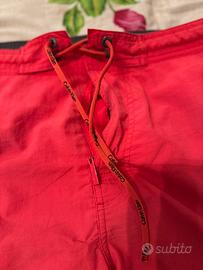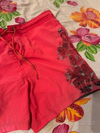 Costume da bagno originale Calvin Klein Swimwear, taglia M, colore rosso corallo con elegante stampa tropicale sul lato. Comodo e leggero, con retina interna e taschino laterale con chiusura in velcro.