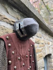 Abito medioevale sartoriale,realizzato a mano con stoffa medioevale,comprensivo di maglia di ferro,elmo e calzamaglia per proteggere dal freddo.Taglia S/M..