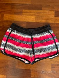 Costume pantaloncino a fantasia da donna marca Tribord, taglia S/M, altezza mezza coscia. Ideato per bagni in mare o in piscina. Dotato di tasca posteriore.