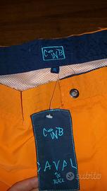 Vendo costumi a pantaloncino per uomo, grigio e arancione. Comprati in una boutique carissima e mai indossati. È presente ancora il cartellino, come visibile in foto. Due tasche ai fianchi e una sul retro. Bottone automatico e velcro per la chiusura, retina contenitiva interna bianca. Effetto sfrangiato in vita. Bande laterali colorate e piccole toppe decorative molto rifinite. Taglia XL.