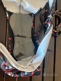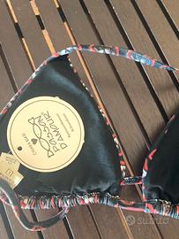 Costume Poisson D’amour fondo nero con stampa, triangolo leggermente imbottito ( rimovibile) , slip con laccetti regolabili
