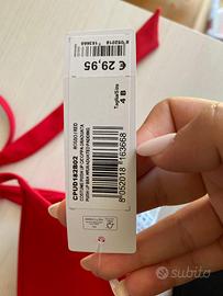 Costume da donna push-up con coppe graduate. Il modello presenta ferretto e imbottitura. L'arricciatura centrale enfatizza la forma del seno, mentre l'allacciatura al collo con fiocco e la fascia posteriore regolabile garantiscono una vestibilità confortevole e personalizzabile. Il prodotto non ha alcun segno di usura e non è mai stato indossato, si può notare anche dalla presenza dell'etichetta.