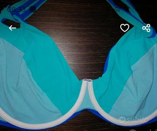 Costume reggiseno con ferretto tg 52 ampia coppa D, colore bluette con profili azzurro, comoda allacciatura all'americana e slip tg 50 marchio italiano Curve Pericolose