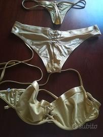 Costume da bagno - tre pezzi mod. Bahamas - Brasiliano + Perizoma Lycra metallizzato oro taglia 44-46 - Mai usato x maternità