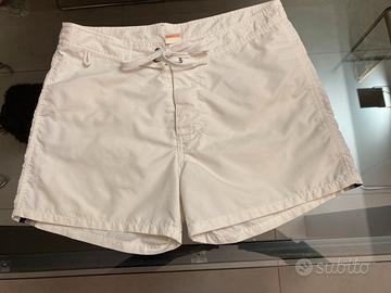 Costume Sundek bianco, taglia 32, corrispondente a una 48, in ottime condizioni, usato pochissimo. Piccolissimi ma impercettibili segni come puntini sotto la tasca posteriore (ultima foto), forse già presenti dall’acquisto a 130 euro. Lavato e Sanificato.