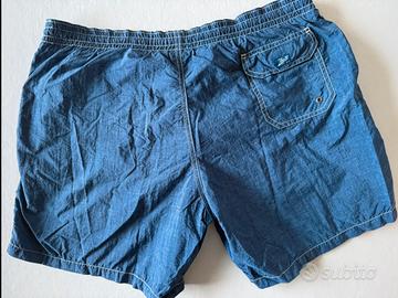 Costume da bagno - BOGGI -colore blu con cuciture a contrasto bianche . Classico modello con elastico in vita e laccetto regolabile . Taglia XXL. Materiale a rapida asciugatura (100% poliammide ( nyilon)