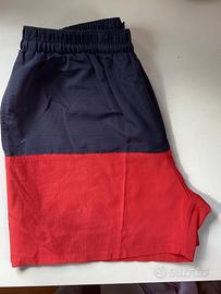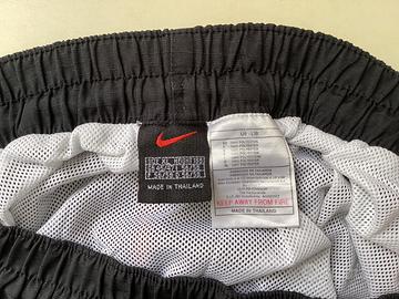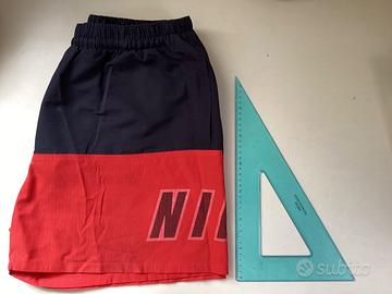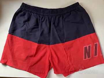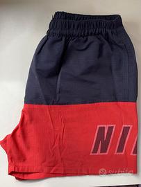 Costume Nike bicolore nero-rosso e lacci neri, con scritta e logo, con due capienti tasche anteriori. All’interno retina. Presenta minimi difetti, visibili in foto. Materiale: 100% poliestere Taglia: XL