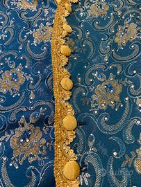 • Gilet (Sottomarsina): Coordinato in tessuto blu e oro, con rifiniture a contrasto.