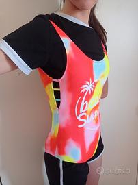 - Costume multicolore Power Flower, età 12-14 in etichetta. Provvisto di coppette in spugna removibili.