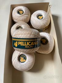 Sei gomitoli da 50 g di cotone, pellicano e gru nuovi in scatola originale