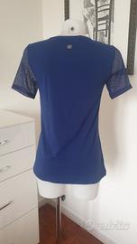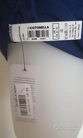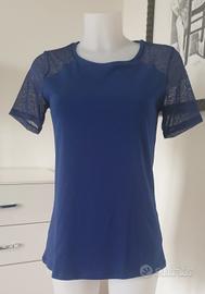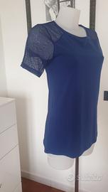 Cotonella Première Classe maglia a mezze maniche blu, scollo tondo, in cotone elasticizzato con inserti in pizzo, nuova con cartellino, taglia M. Misure in cm: spalle 38 ascelle 43 lunghezza 68.